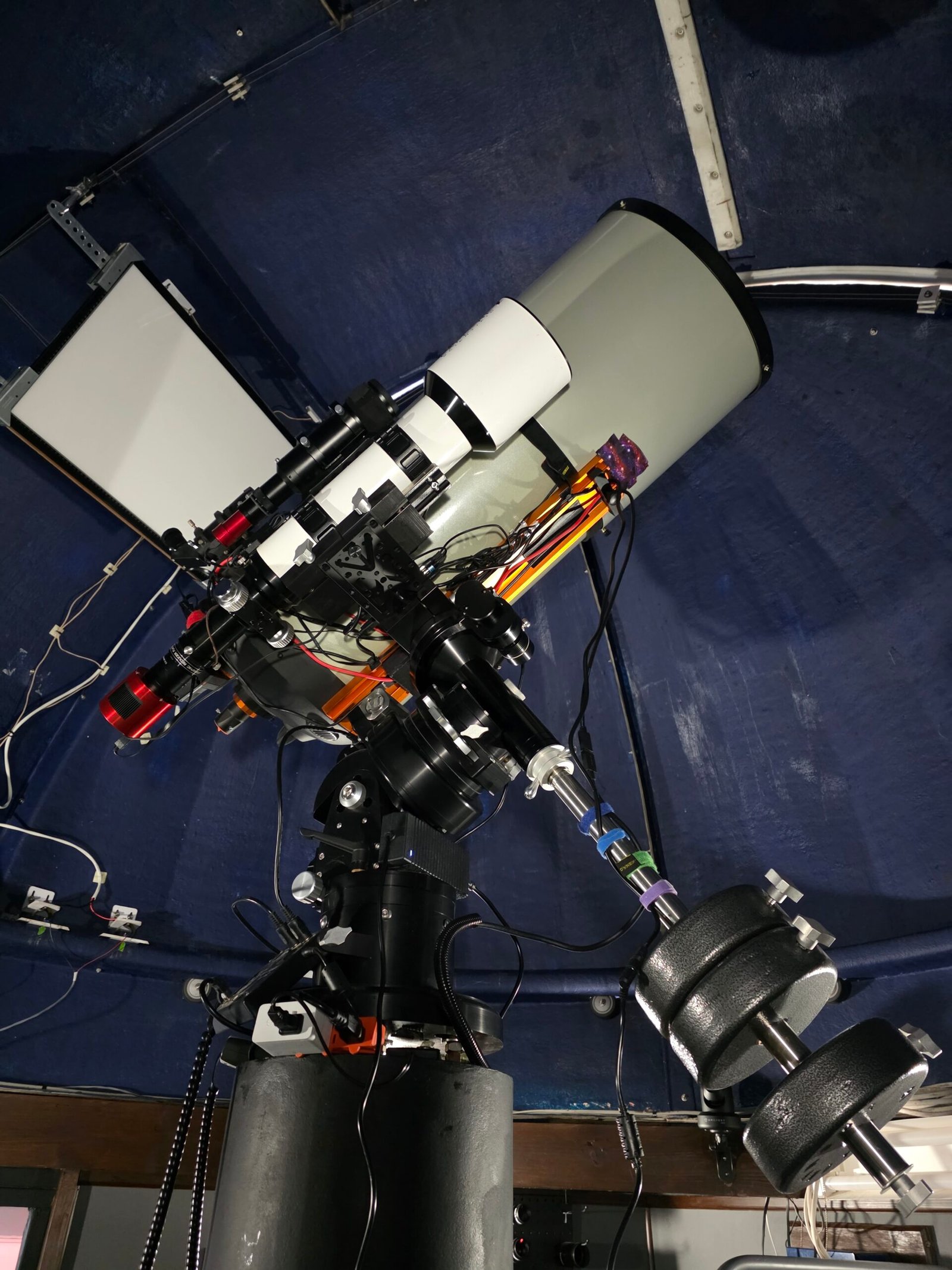 For the first 3 years of operation the primary optical telescopes were rather modest in size, (a Celestron EdgeHD8 an Explore Scientific CF 127mm triplet refractor and an Explore Scientific 102mm triplet refractor). The addition of sensitive imaging cameras enabled them to detect, track and image very faint objects. In 2019 the observatory was upgraded to a larger Celestron EdgeHD14 with a heavier duty Losmandy G11GT mount. The upgrade of the 14″ Aplanatic Schmidt Cassegrain was graciously made possible by the CEO of Celestron Corey Lee.